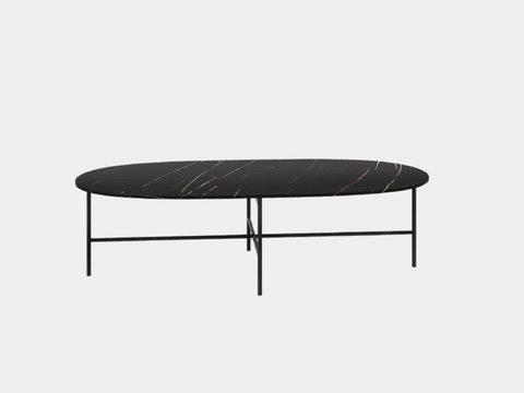 solid marble top, aluminum reinforcement plate, matt chromed or powder-coated metal frame