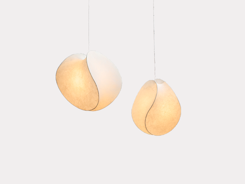 A dense, almost mysterious light is filtered through soft and enveloping materials. Luminosity and transparencies fluctuate, creating repetitions of lights and shadows, solids, and voids. Inspired by Object Art and in particular by the works of Enrico Castellani, these elegant fiberglass sculptures – Solstice applique – and Equinox cocoon-suspension lamp – reinforce the strong understanding between Tacchini and Studiopepe.