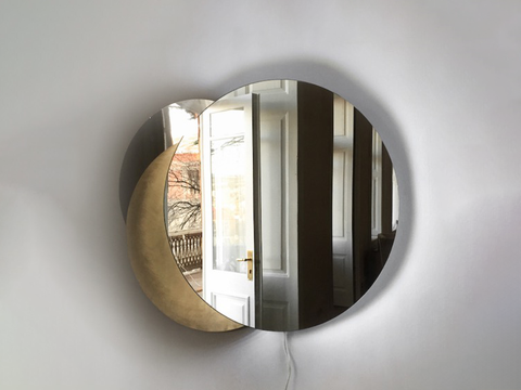 The Eclipse Mirror serves as both a sconce and a mirror.