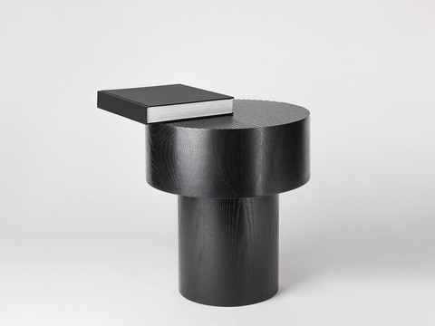 The monolithic tables are composed of simple geometries born out of the curiosity of Guillaume Sasseville to revisit the wood turning technique. Each table is turned and assembled by hand from a laminated solid piece of oak. Their weight bears witness to this. The fine machining of the top surface reinforces the aspect of the cut in the mass.