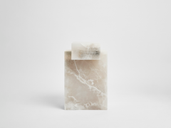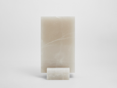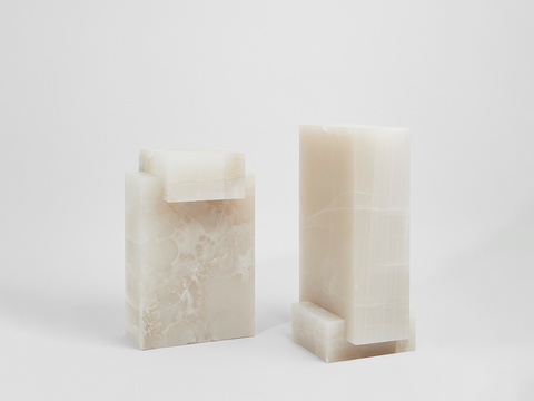 Minimalistic archetypes, composed by two elements, sculpted in white onyx, The objects can be placed upside down, and be used as a side table or a pedestal.