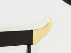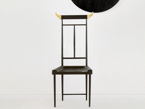 Like its title, the Taurus chair possesses the zodiac qualities of the iconic bull (complete with horns on the seat-back). Exceptionally crafted from metal, timber and brass, the chair has an architectural, slightly otherworldly quality. This rigorous silhouette is offset by the somewhat rough-hewn, handcrafted quality.