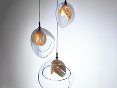 Gem light is defined by the visual interplay between the handcrafted ceramic core and outer glass. Layers of hand carved ceramic components imitate the form of a blossom, a sprout or a gem, surrounded and protected by a glass layer.