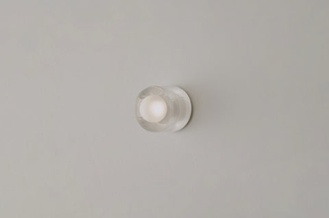 Glass Anton Micro is cast from solid clear glass, resulting in the unique textural variations through which the light gently diffuses onto the mounting surface. Backing plate finish specifiable.