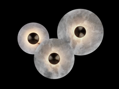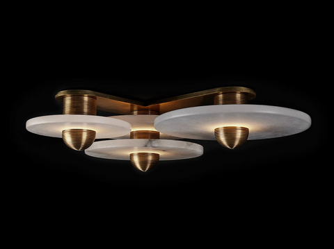 The translucent alabaster planes of the Median Series are intersected by a fluted brass form, referencing traditional Middle Eastern jewelry while pushing it through a futurist lens. The stone glows from a light source that remains hidden, illuminating the relationship between the solid and the permeable.