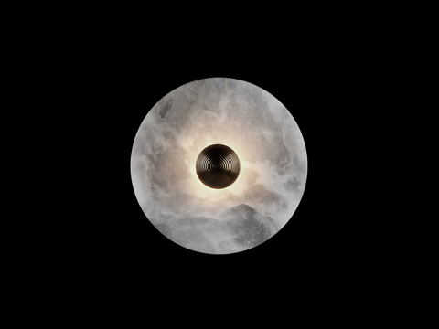 The translucent alabaster planes of the Median Series are intersected by a fluted brass form, referencing traditional Middle Eastern jewelry while pushing it through a futurist lens. The stone glows from a light source that remains hidden, illuminating the relationship between the solid and the permeable.