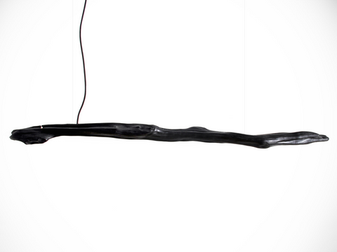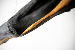 The Burning Ego serves as an ode to the often neglected essence of the bough and its relationship with light and life. The design of the lamp arose from a search for balance between the cultivated and the asymmetric design of Mother Nature. To accentuate the beautiful and muscular forms of the bough, the Shou Sugi Ban technique is applied. This ancient woodworking technique from Japan burns away the soft parts of the wood by letting the LED follow the original form of the bough and using minimalistic suspension, the Burning Ego floats powerfully through mid air.