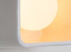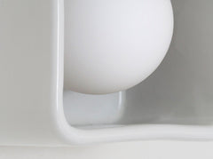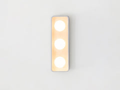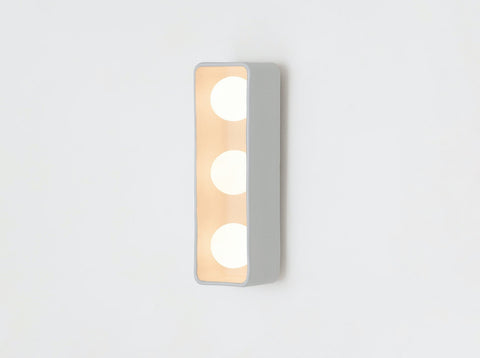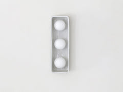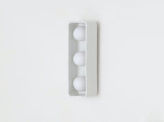 The Brick III is a modern interpretation of the classic vanity sconce, celebrating the dialogue between the handmade and the serial. A cast earthenware base hand-glazed in soft white frames a trio of matte opal globes, suggesting a hollowed brick cradling neotenic forms. This sconce can be mounted vertically or horizontally for a flattering, luminous glow.