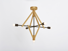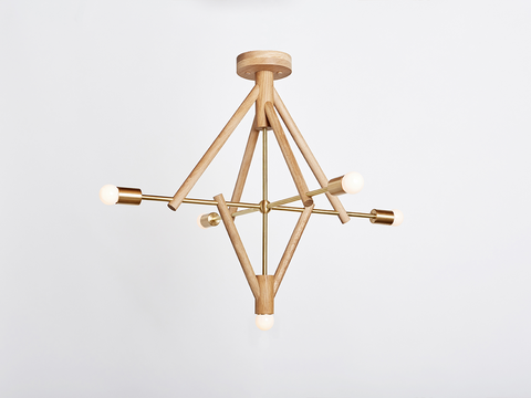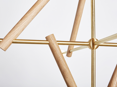 wooden frame, metal structure, porcelain bulbs