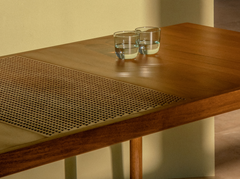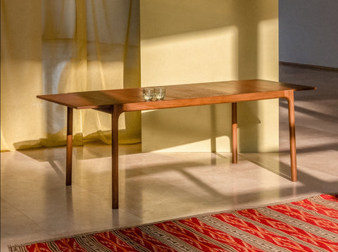 Unna Table is an elegant multipurpose table that is super lightweight even though it is made entirely in solid wood. What distinguishes the extendable version of the table in addition to its overall sleek design are lace-like hand-carved table top extension leaves, which are inserted in the middle of the table. The table can be extended by 20” with one leaf and 40” with two extension leaves, both conveniently stored underneath the table top.
