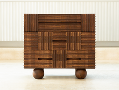Kula Nightstand came to life because of constant demands we were receiving from our business partners for an aesthetically attractive and functional nightstand in solid wood. We did not have any doubts that Michele De Lucchi can create a piece that will stand out and his idea was to use the architectural typology of hand-carved patterns of the Kula chests which Michele De Lucchi also designed for Zanat. This fully hand-carved chest with three drawers elevated on bowl-shaped legs is a piece that will elevate the beauty of any bed it stands next to and add plenty of charm to any bedroom.