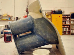 Standing on four chunky legs, this dish-shaped seat is crafted in a single piece of fiberglass for strength and durability. Meticulously handmade by master artisans one piece at a time. It is therefore quite difficult, if not impossible, to make identical items. Any natural blemishes or irregularities should not be misconstrued as flaws. These are what make each handmade piece unique.