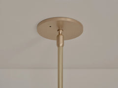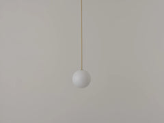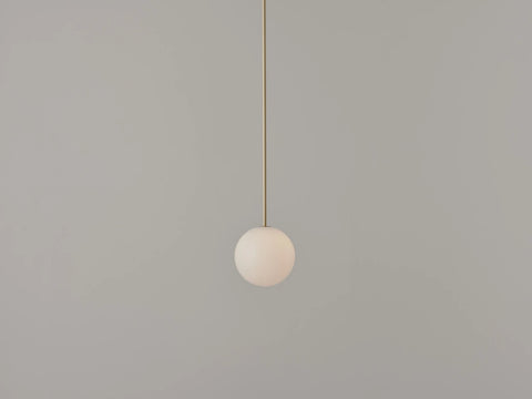Oddball is the straight drop to the Oddments arcs' tense horizontal curves; a simple spherical pendant made from brass and blown glass.